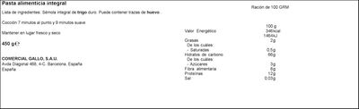 Spaghetti integral Gallo 450g